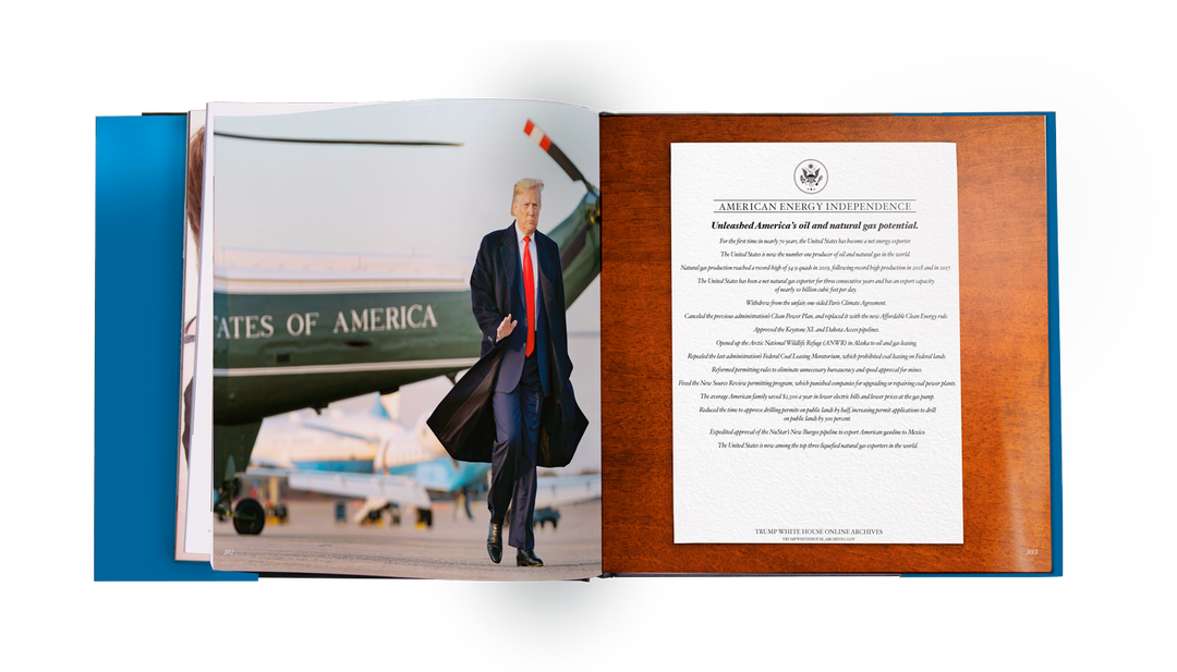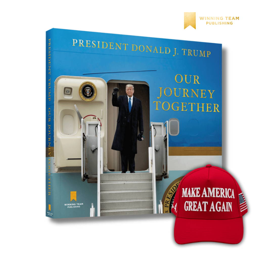 Our Journey Together is a beautiful photo book which covers President Donald J. Trump’s successful time in the White House—a must-have for all Patriots. Every photograph has been handpicked by the President, as has every caption in the book, including those that are handwritten by him. Relive the unforgettable moments of President Trump’s time in the White House: building the southern border wall; cutting America’s taxes; confirming almost 300 federal judges and 3 Supreme Court justices; rebuilding our military; creating Space Force; dealing with Kim Jong-Un, President Xi, President Putin, and many other world leaders; and battling liberals on two impeachment witch hunts!
